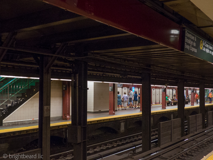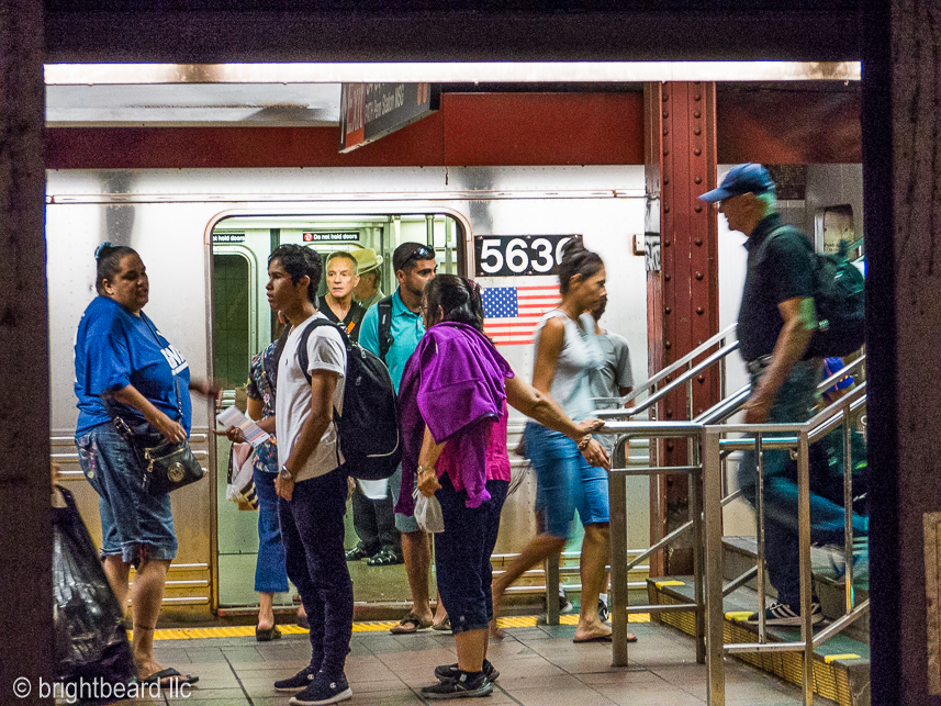There is simply no place like New York City. It spoils you in a subtle but engulfing way. I didn’t know until I was middle-aged and world-traveled, that New York was a singularly unique city that should not be taken for granted, especially by those for whom its day-to-day vibrancy and turmoil is a matter of course. But retired teachers who built lives elsewhere do not cavalierly move back when income is fixed and the NYC cost of living is 140% of the national average. So I visit family who, at no prompting from me, have established lives in NY and its environs. And I take pictures of the life there now which in its rich ethnicities and confusions, its enormous range of wish and frustration, hope and misery, failure and perseverance, wealth and poverty, shifting demographics, and 19th-century politics remains as the hub of possibility for its millions. Those lives, both ordinary and extraordinary, impact the pavements, venues, subway steps, escalators, waterfronts, and meadows I traveled when I was younger then, and, however briefly, today can walk in their footsteps and the memory of my own.